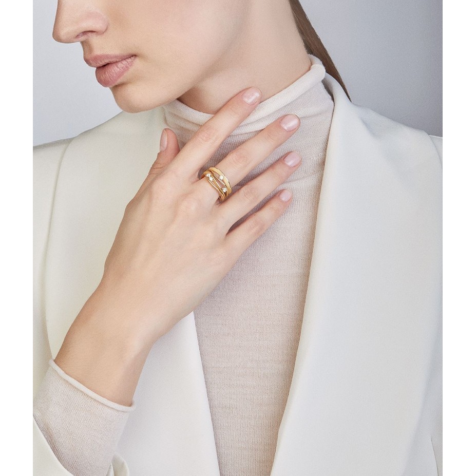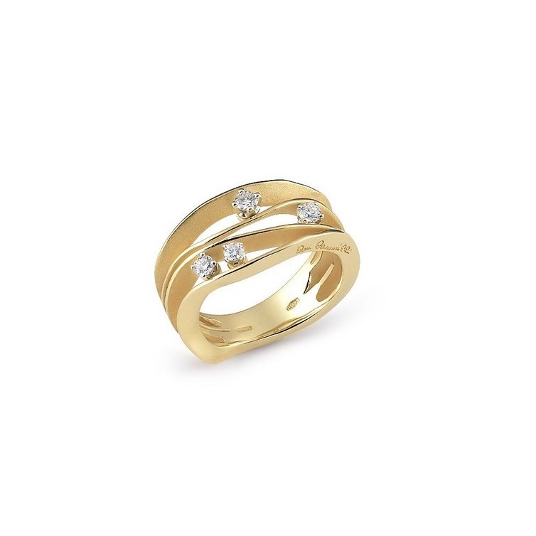 Dieser atemberaubende Ring ist mit Liebe zur Natur gemacht. Die Designerin hat die Anmut der Elemente Wasser, Land und Luft in dieser Kollektion wunderbar festgehalten. Die Wellen des Goldes fangen das Licht elegant ein und werden in ihrem Rhythmus mit schönen gesetzten Diamanten verstärkt.