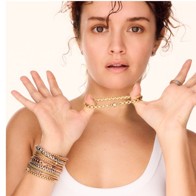 Auf Sanskrit bedeutet Eka eins und wurde so genannt, weil es die erste Kollektion war, die die Flex’it-Technologie und eine neue Art, Goldschmuck zu tragen, einführte. Diese Kollektion ist die kühnste und vielseitigste mit einem Netz aus ineinander verschlungenen Goldelementen.