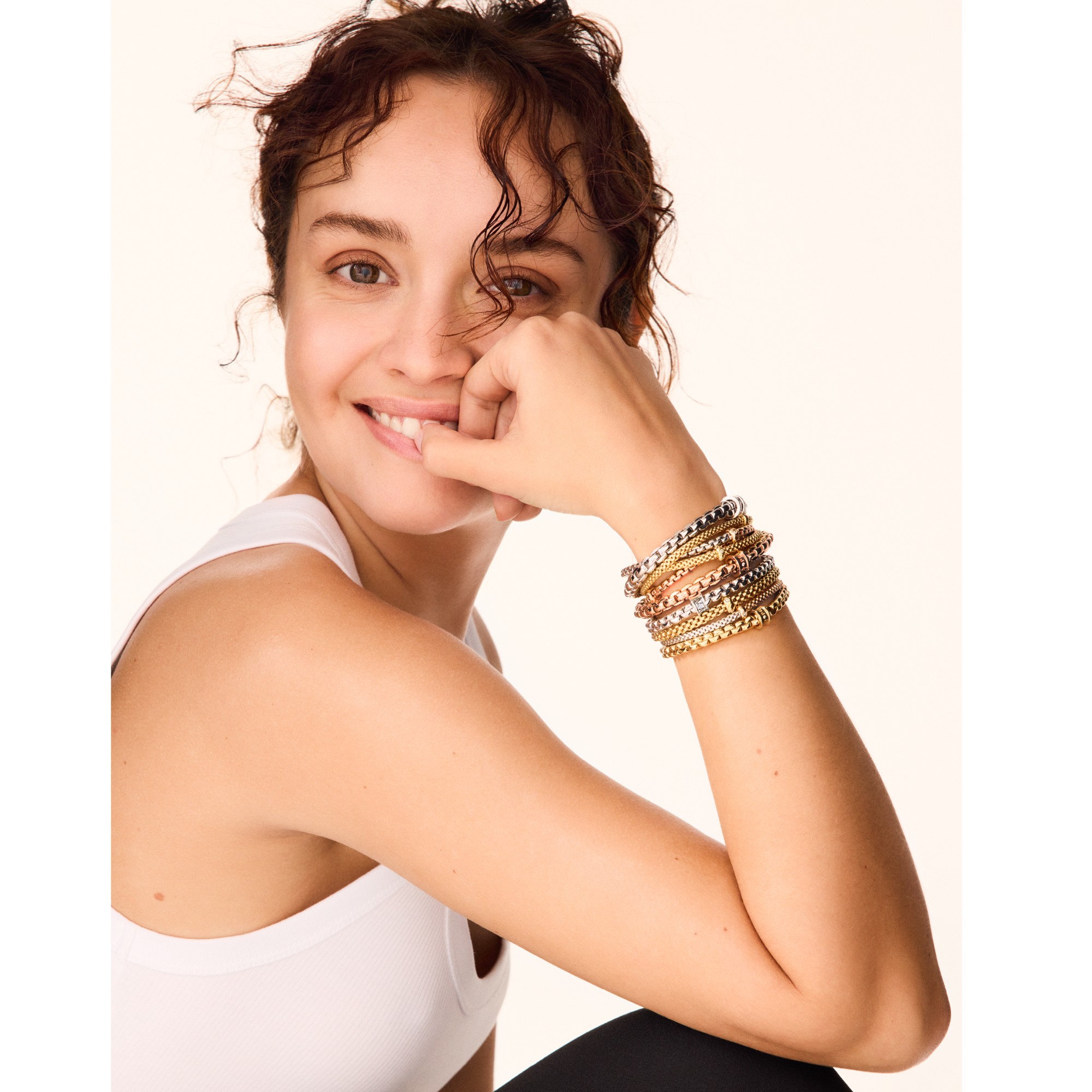 Auf Sanskrit bedeutet Eka eins und wurde so genannt, weil es die erste Kollektion war, die die Flex’it-Technologie und eine neue Art, Goldschmuck zu tragen, einführte. Diese Kollektion ist die kühnste und vielseitigste mit einem Netz aus ineinander verschlungenen Goldelementen.