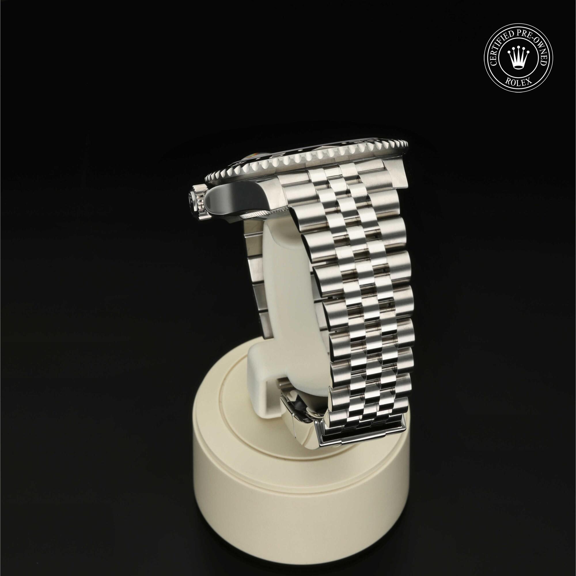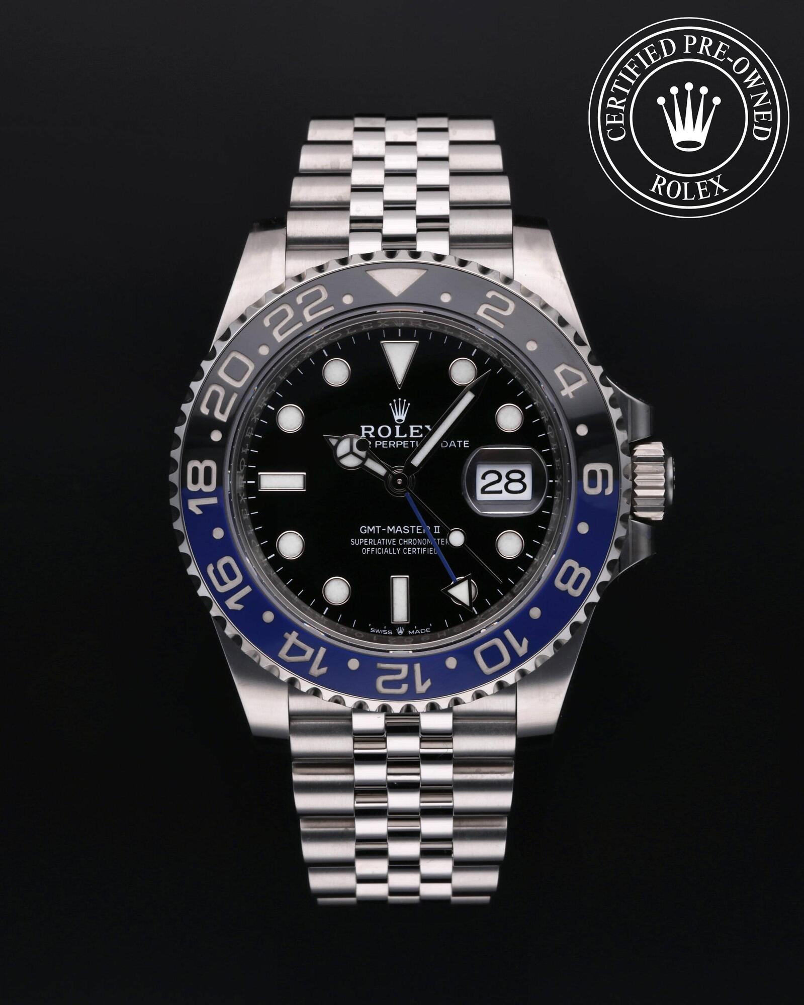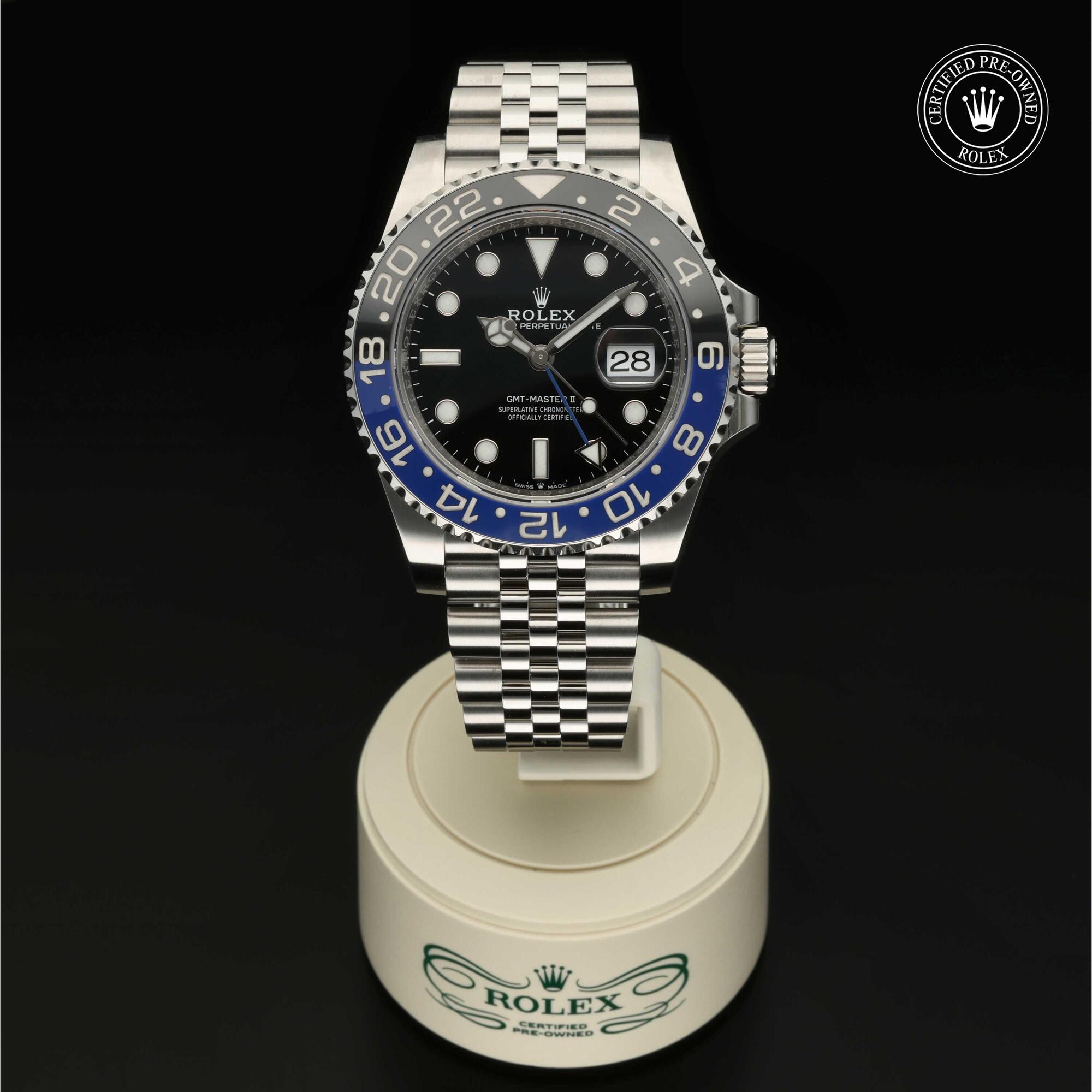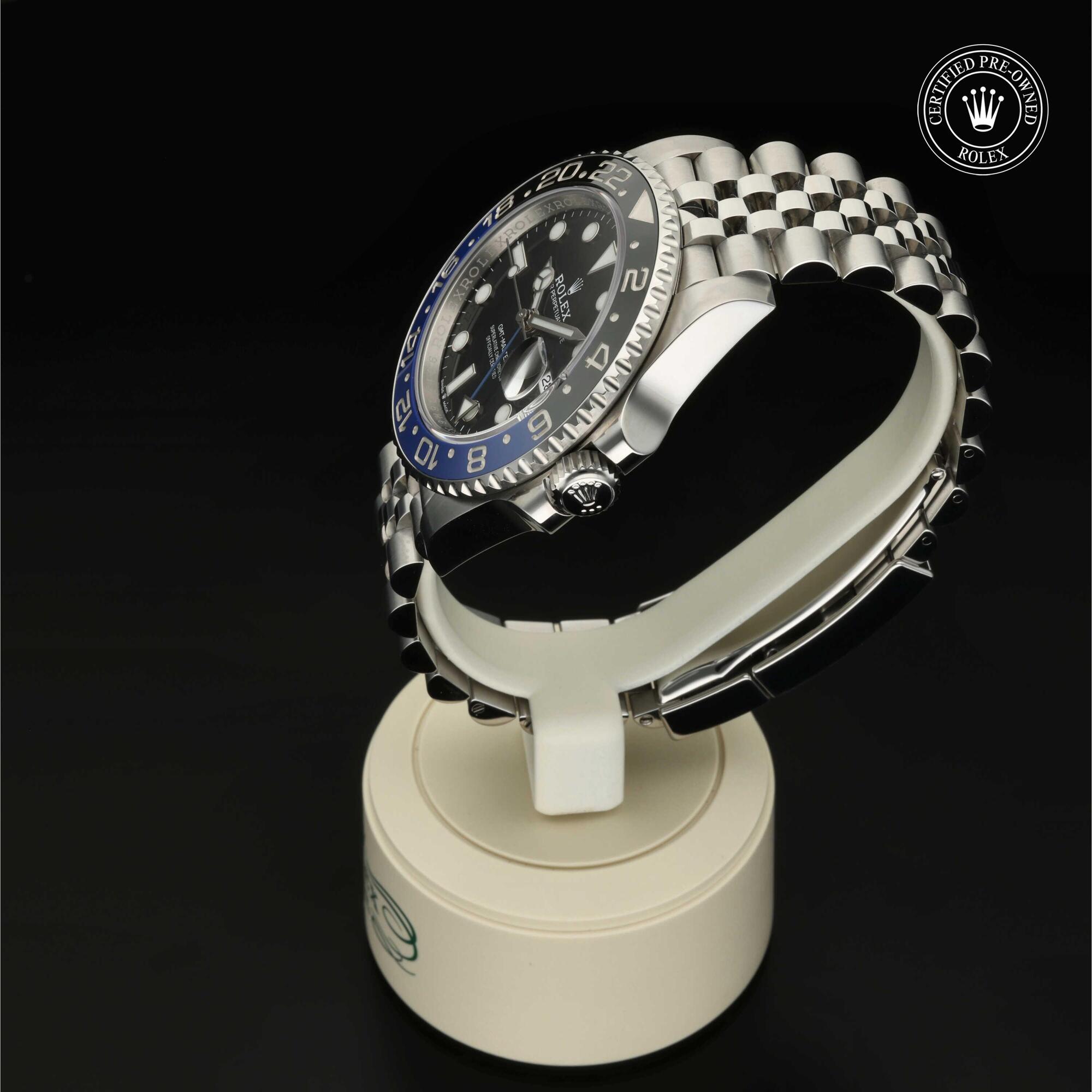 Das 1982 vorgestellte Modell verfügt über die legendäre zweifarbige Zahlenscheibe, die heutzutage aus Hightech-Keramik besteht, und zeigt gleichzeitig die Uhrzeit von zwei Zeitzonen an. Sie trat die unmittelbare Nachfolge der originalen GMT‑Master von 1955 an, die rasch von Transatlantik-Piloten als Navigationshilfe eingesetzt wurde.