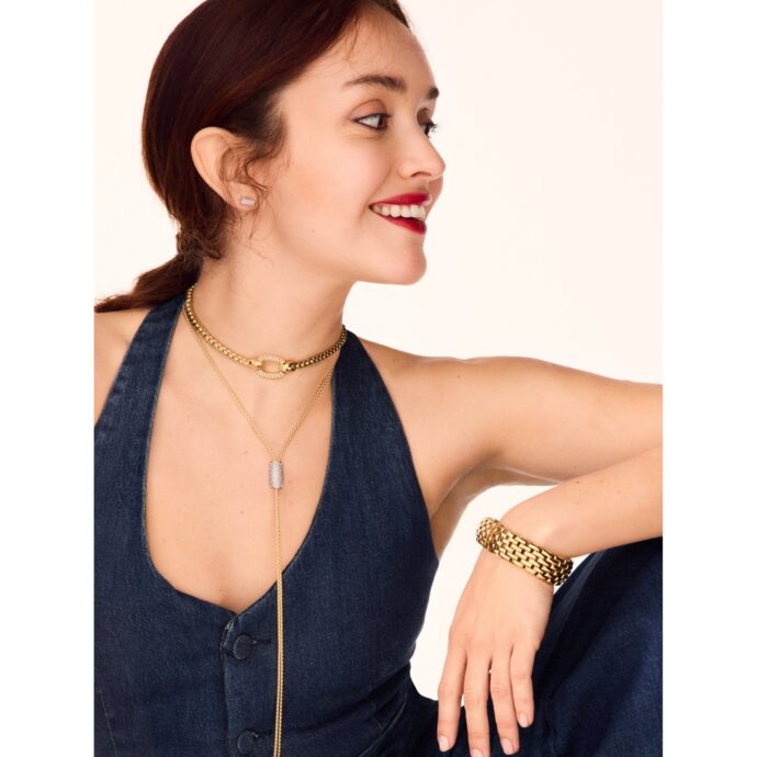 Auf Sanskrit bedeutet Eka eins und wurde so genannt, weil es die erste Kollektion war, die die Flex’it-Technologie und eine neue Art, Goldschmuck zu tragen, einführte. Diese Kollektion ist die kühnste und vielseitigste mit einem Netz aus ineinander verschlungenen Goldelementen.