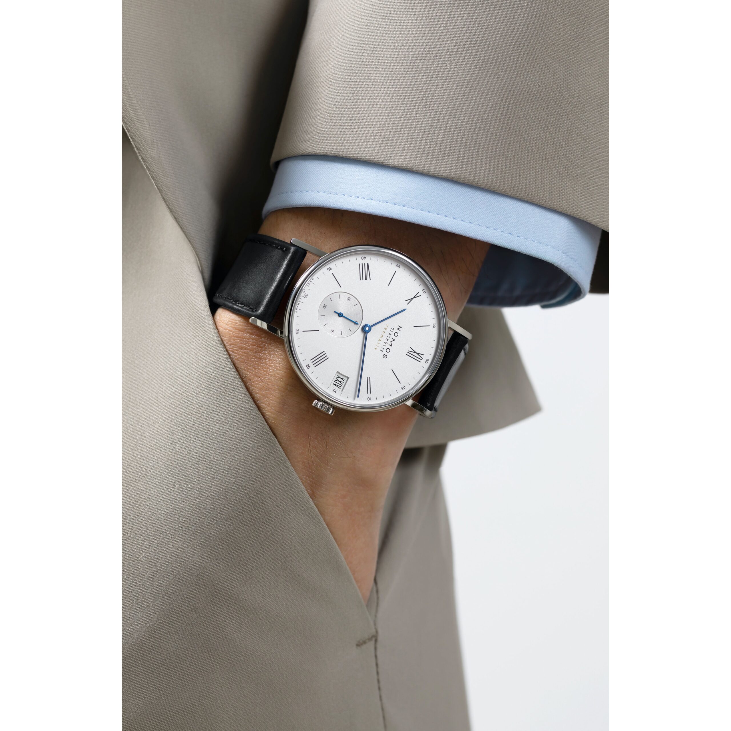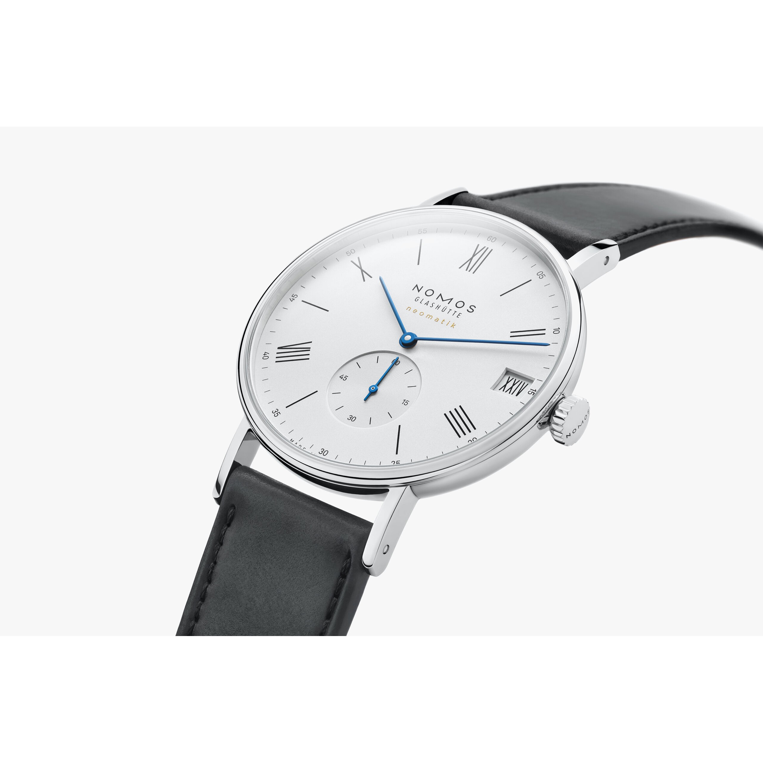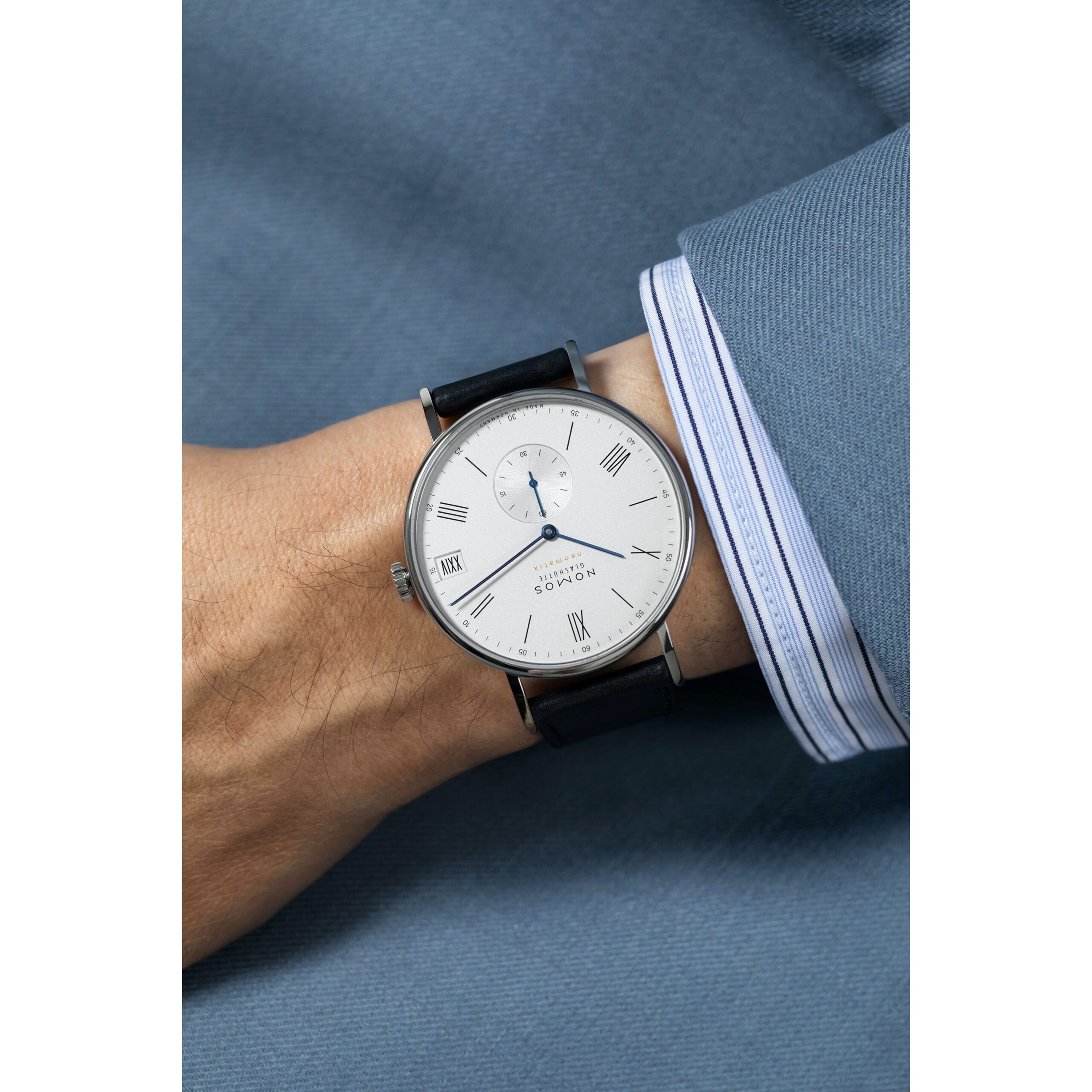 Der besondere Anlass, für den römische Ziffern heute gern verwendet werden, ist diese Automatikuhr selbst: Unser innovativer Datumsring ermöglicht ein luxuriös großes Fenster, in dem man selbst römische Datumsangaben wie XXVIII noch gut lesen kann. Angetrieben wird die Uhr von dem elegant flachen Manufakturwerk DUW 6101 mit patentiertem Datumsmechanismus für komfortable Schnellverstellung in beide Richtungen.