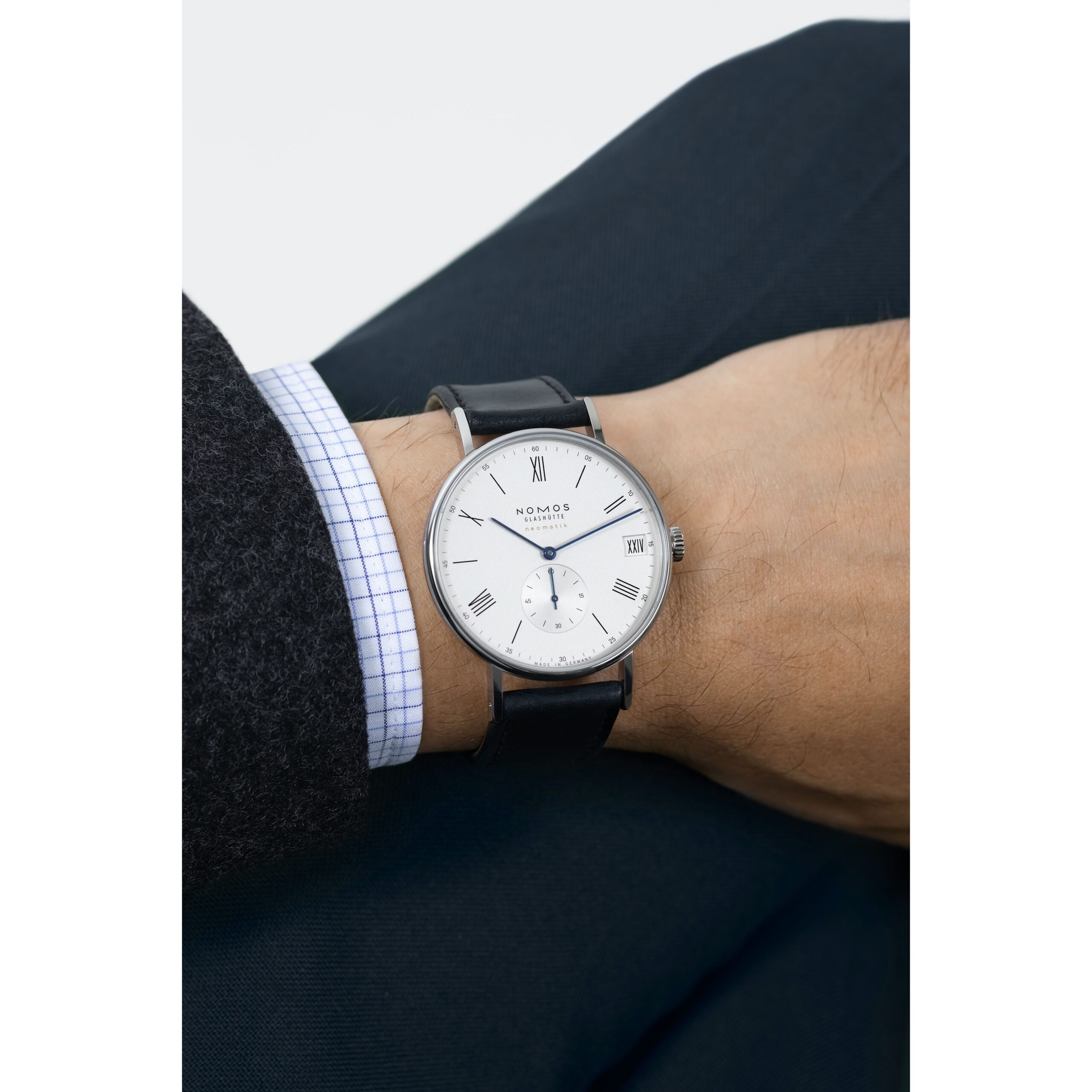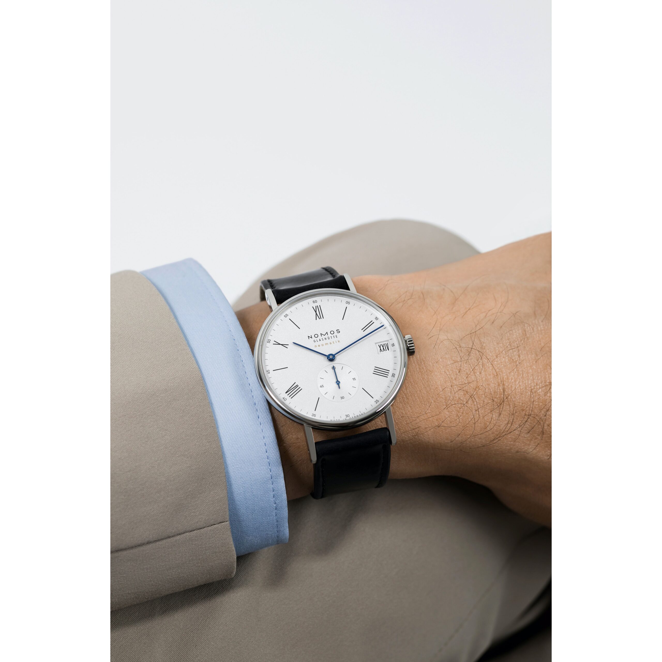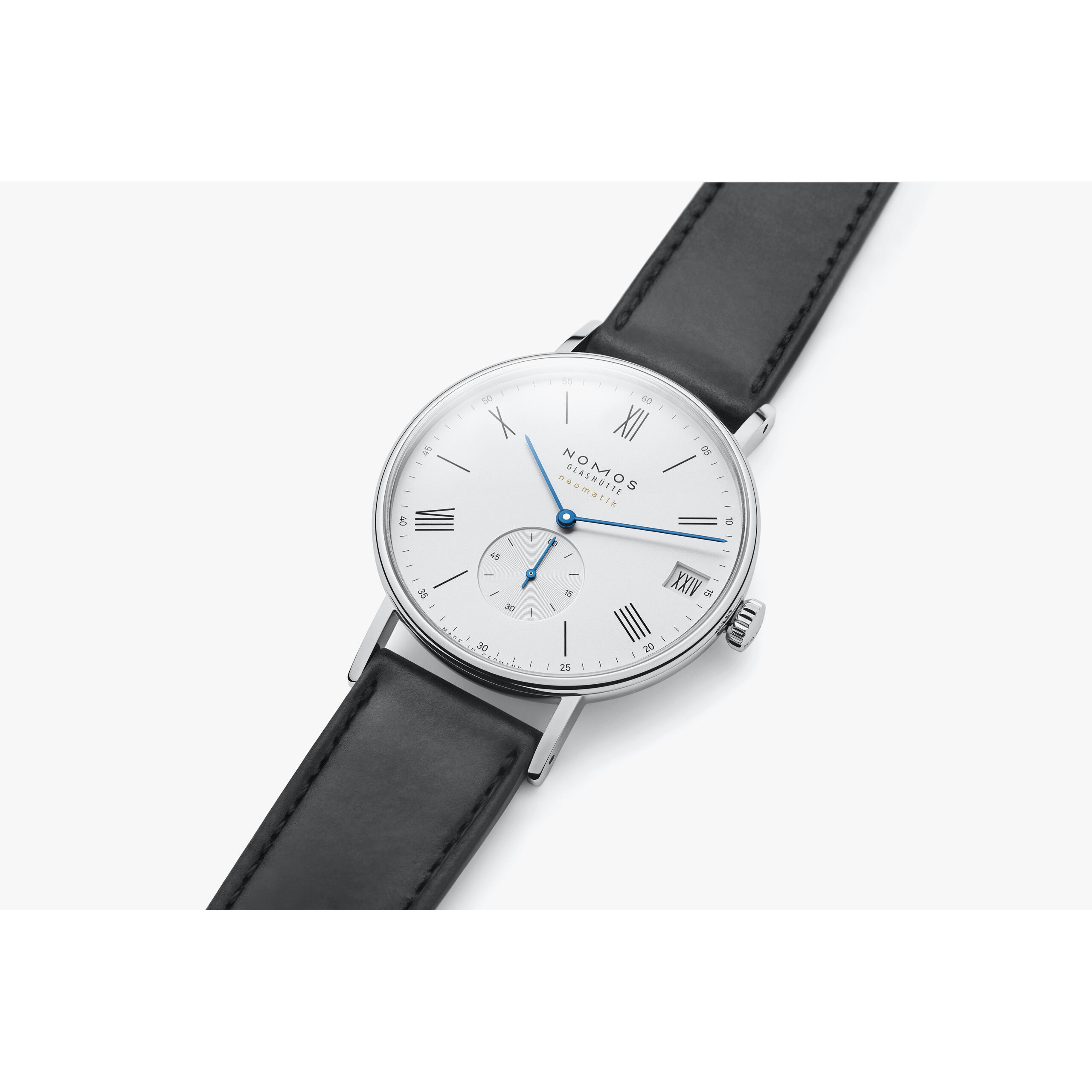 Der besondere Anlass, für den römische Ziffern heute gern verwendet werden, ist diese Automatikuhr selbst: Unser innovativer Datumsring ermöglicht ein luxuriös großes Fenster, in dem man selbst römische Datumsangaben wie XXVIII noch gut lesen kann. Angetrieben wird die Uhr von dem elegant flachen Manufakturwerk DUW 6101 mit patentiertem Datumsmechanismus für komfortable Schnellverstellung in beide Richtungen.