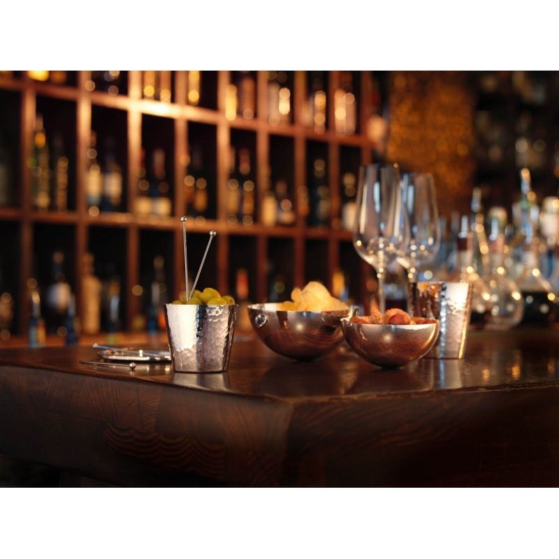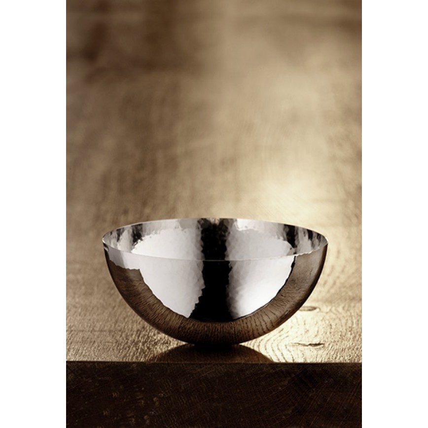 Ob Snacks, Beilagen oder Dekoration – in dieser Martelé Schale von Robbe & Berking wirkt jeder Inhalt sofort ein Stückchen exklusiver. Die Hammerschlagskonturen wurden von Hand in die Schale getrieben und sorgen aus allen Blickwinkeln für den einzigartigen Glanz, der charismatisch für die Martelé Bar-Kollektion ist. Die Schale ist erhältlich in zwei verschiedenen Größen und auf Wunsch auch mit Innenvergoldung.
