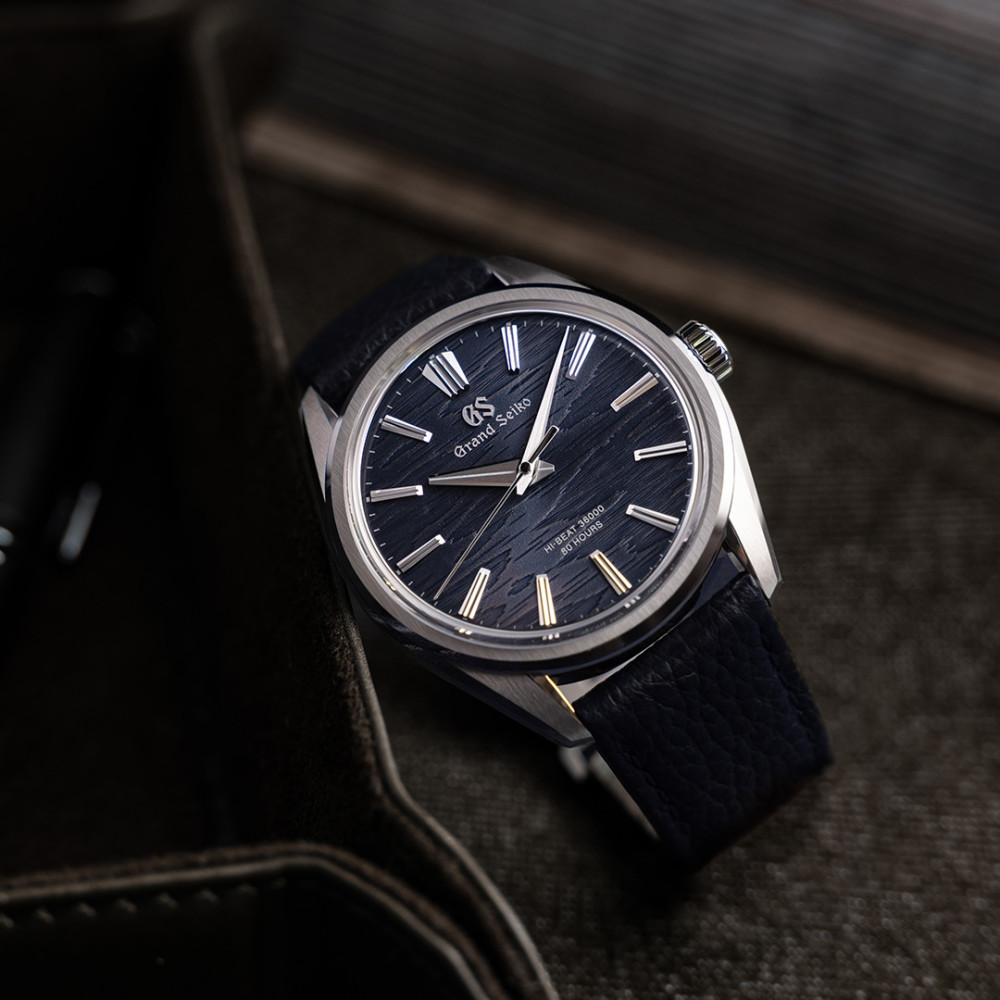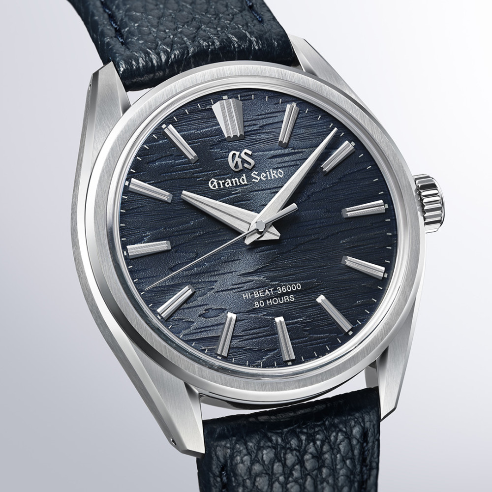 Diese mechanische Uhr mit 10 Schlägen und Handaufzug basiert auf dem „Evolution 9 Style“, einer einzigartigen Design-Grammatik, die den Geist von Grand Seiko mit dem ästhetischen Empfinden Japans auf ein höheres Niveau bringt. Ihr strukturiertes, marineblaues Zifferblatt erinnert an die Rinde einer weißen Birke, die vom Mond beleuchtet wird. Mit ihrem schlanken Edelstahlgehäuse, das nur 9,95 mm dick ist, hat die Kreation ein Aussehen, das einer Grand Seiko Dress Watch würdig ist. Die Fassung ist raffiniert, mit einem schmalen Profil, das zu den Bandanstößen passt, deren klare Linien sich auf dem Zifferblatt in den Indexen wiederfinden. Das Handaufzugswerk ist das Kaliber 9SA4, das sich durch eine hohe Schwingungszahl von 10 pro Sekunde auszeichnet, um eine stabile Ganggenauigkeit zu gewährleisten, sowie durch eine großzügige Gangreserve von bis zu 80 Stunden.