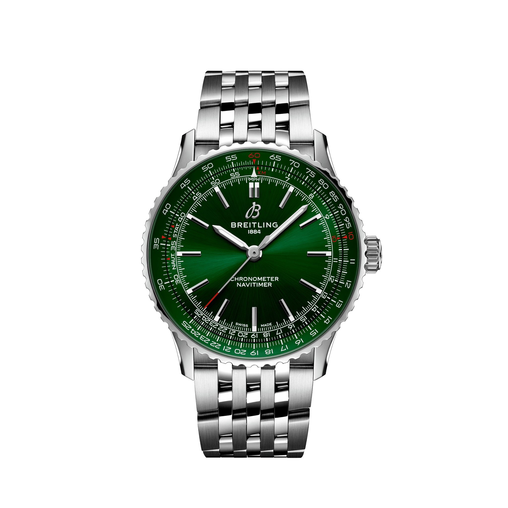 Breitlings vielseitigste Navitimer – For the Journey. Die Navitimer ist eine der bekanntesten Uhren, die je hergestellt wurden. Sie steht als eine der grossartigsten Uhren aller Zeiten auf den Sammlerlisten. Was 1952 als Instrument für Piloten begann, hat inzwischen eine tiefe Bedeutung für alle, die dieser Zeitmesser auf ihrer persönlichen Reise begleitet. Die Navitimer Automatic und Automatic GMT 41 präsentieren die Essenz des ikonischen Looks, verzichten auf den Chronographen und bewahren dabei ein ausgewogenes Zifferblatt. Die mittige Platzierung der 24-Stunden-Skala auf dem klaren Gesicht der GMT und der Automatic hebt den komplexen Rechenschieber hervor und veredelt die gesamte Ästhetik. Als weitere Verfeinerung der Kollektion wurde eine Lünette mit Griffmulde für einen zeitgenössischen Touch integriert, während abwechselnd polierte und gebürstete Finishes ein dynamisches Lichtspiel erzeugen. Armbänder aus Alligatorleder und mit nahtloser Doppelfaltschliesse garantieren höchsten Komfort. Das Angebot umfasst farbenfrohe Zifferblätter, die wahlweise in Edelstahl oder 18-karätiges Rotgold gefasst sind. Diese Neuerfindung der Navitimer, in der Klassik und Modernität zusammenfinden, ist für Uhrenbegeisterte und Stilbewusste gleichermassen geschaffen und spiegelt Breitlings Verpflichtung zu Tradition und Innovation in jedem Zeitmesser wider.