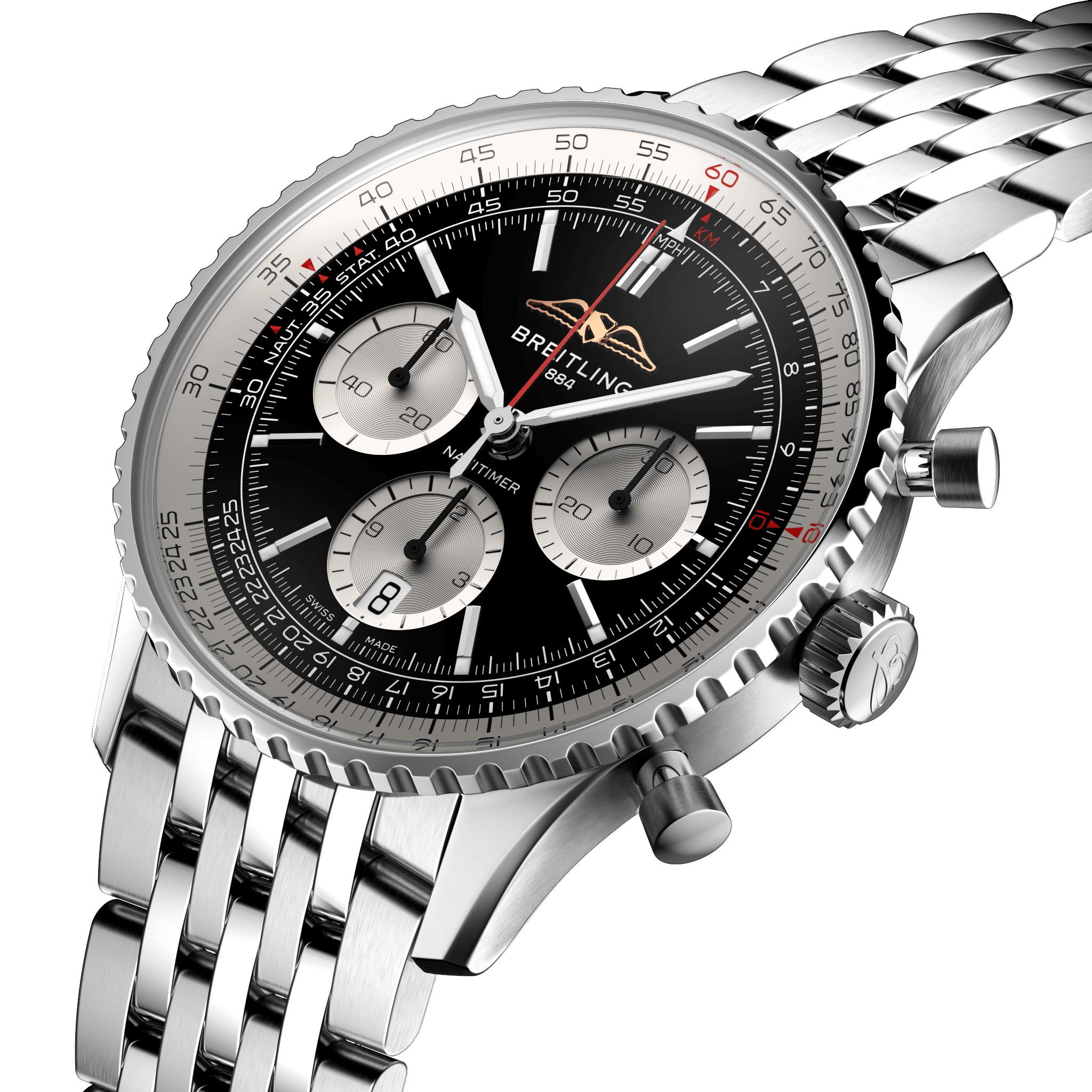 Der legendäre Fliegerchronograph von Breitling – für die Reise. Im Jahr 1952 entwickelt Willy Breitling einen Chronographen mit einem kreisförmigen Rechenschieber, mit dem Piloten alle notwendigen Flugberechnungen durchführen können. Zwei Jahre später macht die renommierte amerikanische Vereinigung AOPA (Aircraft Owners and Pilots Association) diese Ausführung zu ihrem offiziellen Zeitmesser. Die «Navigation Timer» – oder Navitimer – ist geboren. Die AOPA ist und bleibt der grösste Pilotenverein der Welt und zählt fast jeden US-Piloten zu ihren Mitgliedern. Als De-facto-Fliegeruhr während der glorreichen Ära der zivilen Luftfahrt wurde die Navitimer von Piloten und Flugbegeisterten gleichermassen getragen. 1962 schaffte sie es am Handgelenk des Astronauten Scott Carpenter sogar ins Weltall. Doch nicht nur Piloten waren von der unbändigen Ästhetik der Uhr beeindruckt. Berühmtheiten wie Miles Davis oder Serge Gainsbourg gehörten ebenfalls zu ihren Fans und bewiesen damit, dass die Navitimer nicht nur stilvoll, sondern auch funktional war. Seit ihrer Markteinfürung vor 70 Jahren wurden diverse Modelle dieser Breitling Ikone lanciert, doch diese neue Navitimer überzeugt mit ihren klassischen Eigenschaften, die mithilfe moderner Verbesserungen noch verfeinert wurden. Ein abgeflachter Rechenschieber und ein gewölbtes Glas schaffen den Eindruck eines schlankeren Profils. Der Wechsel von polierten und gebürsteten Metallelementen sorgt für ein schimmerndes und dennoch dezentes Aussehen. Es sind vor allem die neuen Farben in Blau-, Grün- und Kupfertönen, die die aktualisierten Zifferblattoptionen definieren. Und wenn es eine Neuerung gibt, die für Nostalgie sorgen wird, sind es die AOPA-Flügel, die nun wieder dort sind, wo sie ursprünglich waren – bei 12 Uhr. Seit bereits 70 Jahren erfreut sich die Original-Fliegeruhr grosser Beliebtheit bei Piloten und Trendsettern gleichermassen. Getragen von Astronauten im Weltraum und von den grössten Stars der Welt, handelt es sich um den legendärsten Zeitmesser von Breitling und um eine der unverwechselbarsten Uhren aller Zeiten.