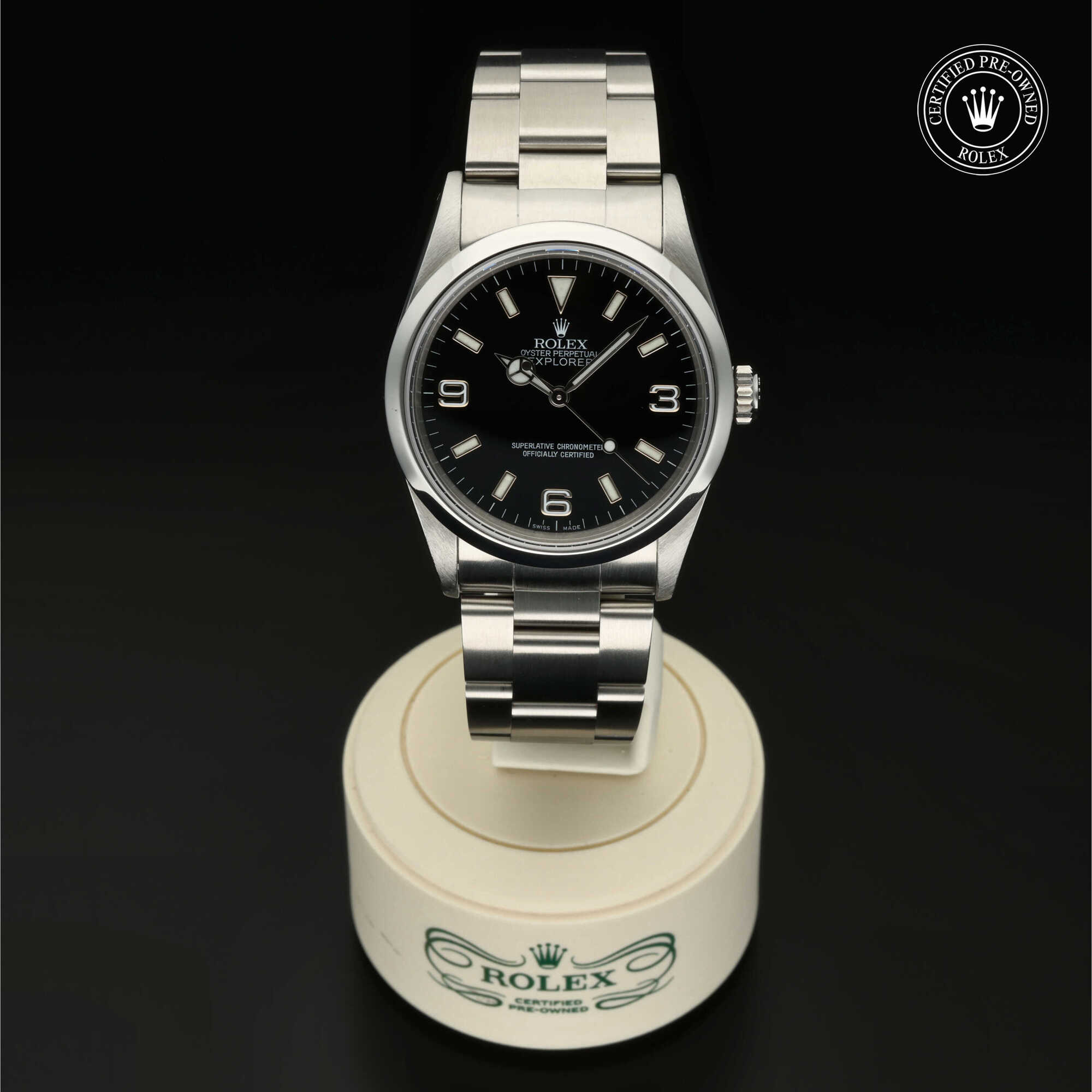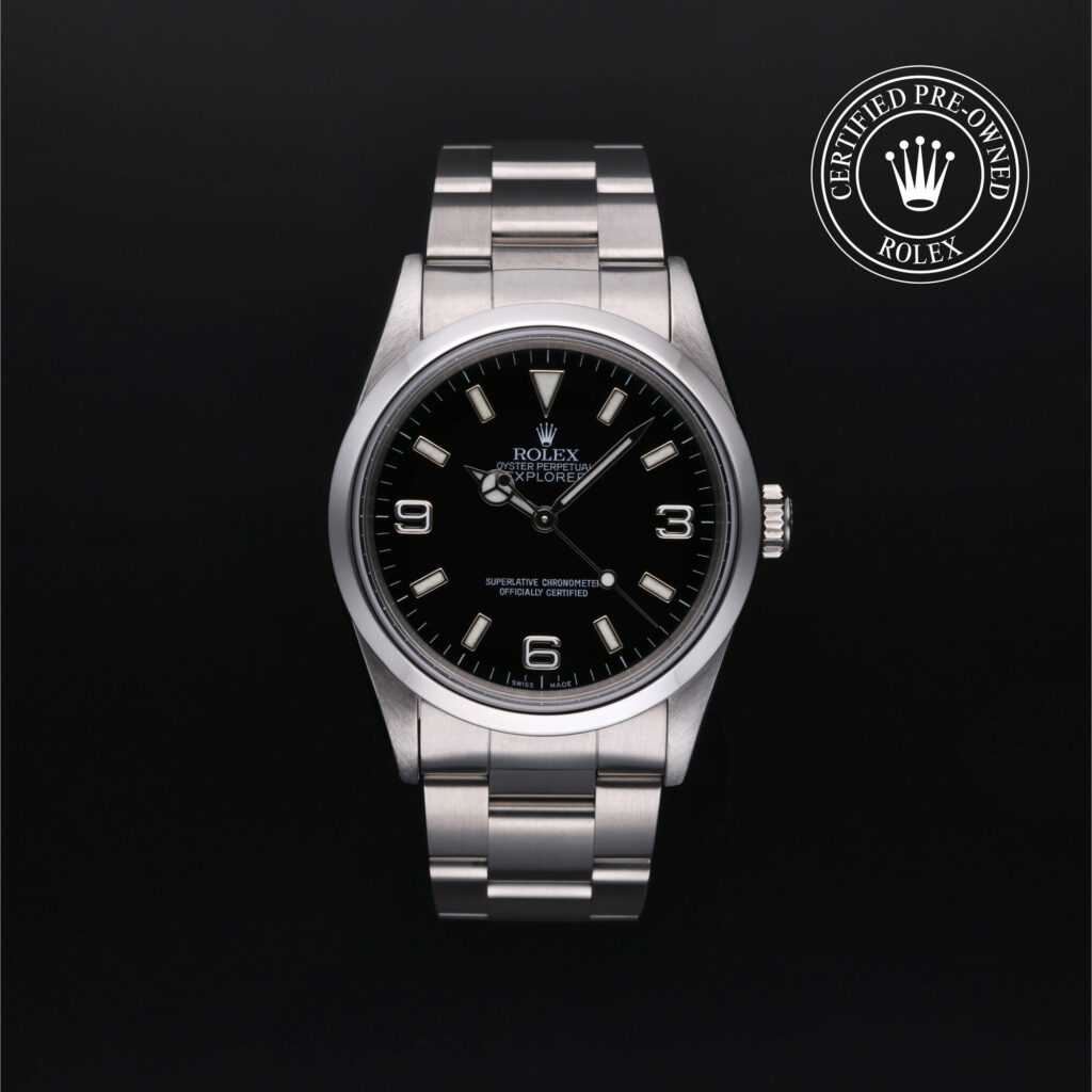 Sie besticht durch ein schwarzes Zifferblatt mit großen Indizes sowie den für das Modell typischen Ziffern 3, 6 und 9. Die Explorer zeichnet sich durch ihre Zuverlässigkeit und gute Ablesbarkeit unter allen Umständen aus und ist eine der ersten Rolex Funktionsuhren.