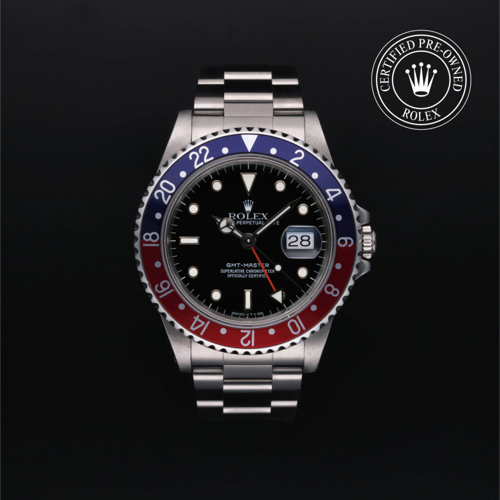 Das 1982 vorgestellte Modell verfügt über die legendäre zweifarbige Zahlenscheibe, die heutzutage aus Hightech-Keramik besteht, und zeigt gleichzeitig die Uhrzeit von zwei Zeitzonen an. Sie trat die unmittelbare Nachfolge der originalen GMT‑Master von 1955 an, die rasch von Transatlantik-Piloten als Navigationshilfe eingesetzt wurde.