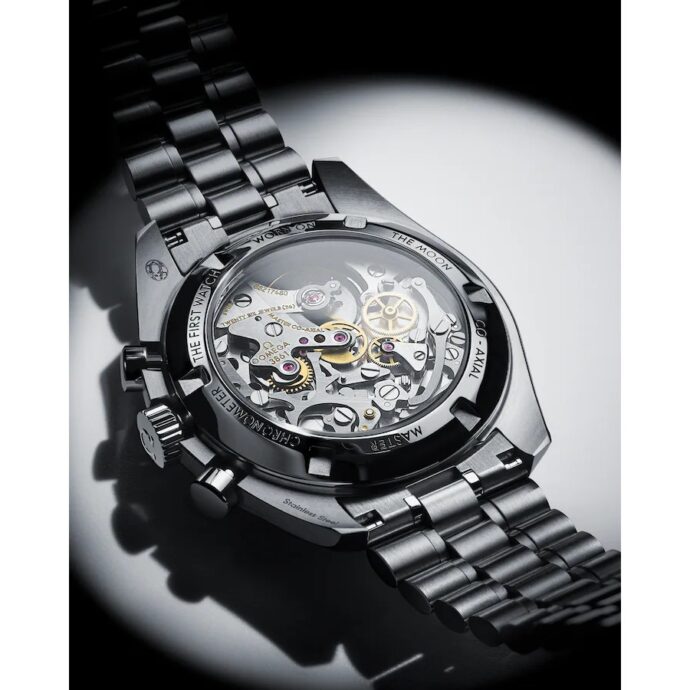 Angetrieben wird die Uhr von dem OMEGA Co-Axial Master Chronometer Kaliber 3861, das neben der zentralen Chronographenfunktion über eine kleine Sekunde, einen 30-Minuten-Zähler und einen 12-Stunden-Zähler verfügt.