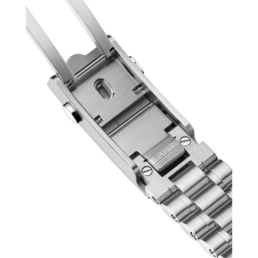 Dieses 42-mm-Modell verfügt über Saphirglas auf der Vorder- und Rückseite und wird mit einem polierten, gebürsteten Edelstahlarmband geliefert. Das Design ist inspiriert von der 4. Generation der Speedmaster, die auf dem Mond getragen wurde. Das schwarz lackierte, abgestufte Zifferblatt mit Doppelplatine wird durch weiß lackierte Hilfszifferblätter in rhodinierten Rahmen ergänzt. Zu den Details gehören das OMEGA Logo und die Indezes, Zeiger im Stil einer Moonwatch und der berühmte Punkt über der 90 auf dem schwarzen Keramiklünettenring.