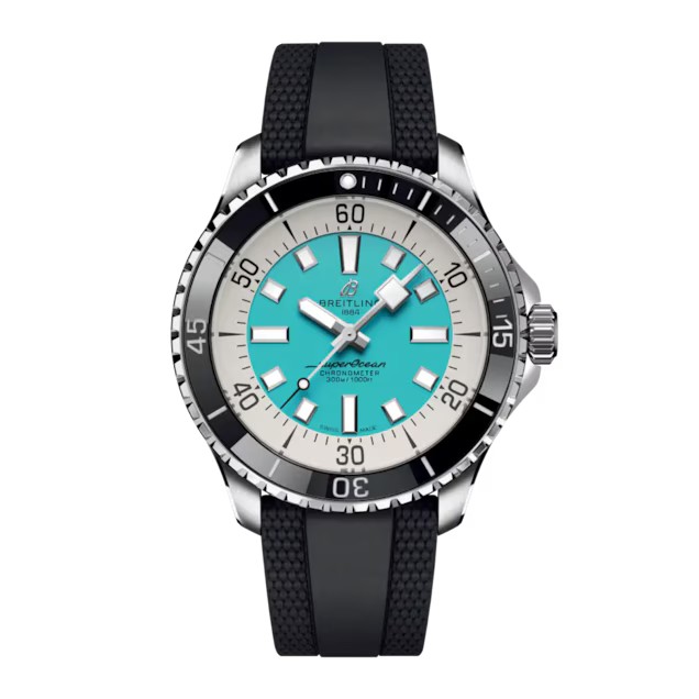 Leistung und Stil für alle Ihre Wassersport-Aktivitäten. In den 1960er-Jahren kam der neuartige Tauchsport gross in Mode. Für Taucher war Timing alles, und Breitling machte sich daran, eine möglichst schnörkellose Taucheruhr für sie zu entwickeln, bei der auf jede Funktion verzichtet wurde, die nicht auf ihre lebensrettenden Ansprüche unter Wasser abgestimmt war. Diese reduzierte Uhr erhielt den Namen Slow Motion. Was blieb, waren klare Linien, massive Leuchtzeiger, eckige Indizes und ein kontrastreicher Zifferblattring, um maximale Ablesbarkeit zu garantieren. Praktisch war sie in jedem Fall. Aber was die Leute wirklich begeisterte, war ihr Look. Die neue Superocean nimmt die gefeierten Designelemente der Slow Motion wieder auf und ergänzt sie mit modernen Funktionen wie einer Keramikinlay-Lünette und Zifferblättern in leuchtenden Farben. Breite Zeiger und Indizes in lumineszierendem Super-LumiNova® sorgen für eine einfache Ablesbarkeit unter Wasser. Die Uhr ist wasserdicht bis 300 Meter (1000 Fuss), stossfest sowie sand- und salzwasserbeständig. Bei der Version in Bronze kommt eine spezielle Legierung zum Einsatz, die eine exzellente Korrosionsbeständigkeit aufweist, aber mit der Zeit eine dezente Patina entwickelt, durch die die Uhr noch einzigartiger wird. Die beiden Armband-Optionen (Gummi- oder Metallarmband) verfügen über eine Faltschliesse, mit der kleinste Anpassungen bis zu 15 mm möglich sind, so dass die Uhr ganz einfach über Rashguards und Neoprenanzügen getragen werden kann. Die kratzfeste Keramikinlay-Lünette wird niemals abnutzen oder verblassen. Zur Sicherheit ist die Lünette bei den meisten Grössen einseitig drehbar und bei 46 mm beidseitig drehbar mit patentierter Verriegelung. Das Allerbeste: Dies ist nicht länger eine reine Taucheruhr – surfen Sie mit ihr, schwimmen Sie mit ihr, besuchen Sie die Strandbar mit ihr und tragen Sie sie dann zum Dinner. Die Superocean ist die perfekte Balance zwischen nostalgischem Vermächtnis und einem frischen, neuen Look.