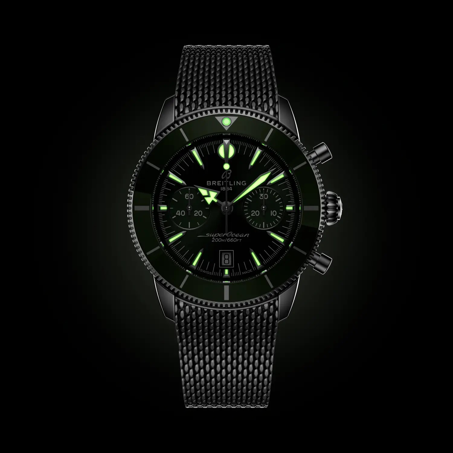 Gemacht, um sich zwischen den Wellen und dem Ufer zu bewegen. Die Superocean Heritage ist keine gewöhnliche Seeuhr – das war sie nie. Als Breitling sie 1957 erstmals auf den Markt brachte, verfolgte das Unternehmen einen anderen Ansatz als andere Taucheruhren dieser Zeit. Bei der Ref. 1004 (einem schlanken Schmuckstück, das nur die Zeit anzeigt) und der Ref. 807 (dem weltweit ersten speziellen Tauchchronographen) ging es nicht nur darum, die Unterwasserwelt zu erkunden, sondern auch darum, dabei gut Die Speer-und-Pfeil-Zeiger, die eloxierte drehbare Lünette und die natürlich schlanken Proportionen machten sie schnell zu einem Favoriten von stilvollen Abenteurern, die für das Meer und die Szene lebten. Auch heute noch ist diese Philosophie das Herzstück der Superocean Heritage. Die Seele der 50er Jahre, aber im neuen Kleid für die Gegenwart. Die neueste Superocean Heritage baut auf allem auf, was das Original unverwechselbar gemacht hat, und verfeinert es. Der Chronograph wird vom Breitling-Manufakturkaliber 01 angetrieben, dem branchenführenden Uhrwerk von Breitling. Eine Lünette mit Keramikeinlage bietet außergewöhnliche Kratzfestigkeit, während die integrierten Armbänder aus Mesh-Metall oder Mesh-Kautschuk eng am Gehäuse anliegen und mit Faltschließen für ein sauberes, wasserdichtes Finish gesichert werden. Ton-in-Ton-Hilfszifferblätter, ein diskretes Datumsfenster auf sechs Uhr und die originalen Signaturzeiger – Pfeil für die Stunden, Speer für die Minuten – sorgen für Ablesbarkeit und Ausgewogenheit, über oder unter der Oberfläche.