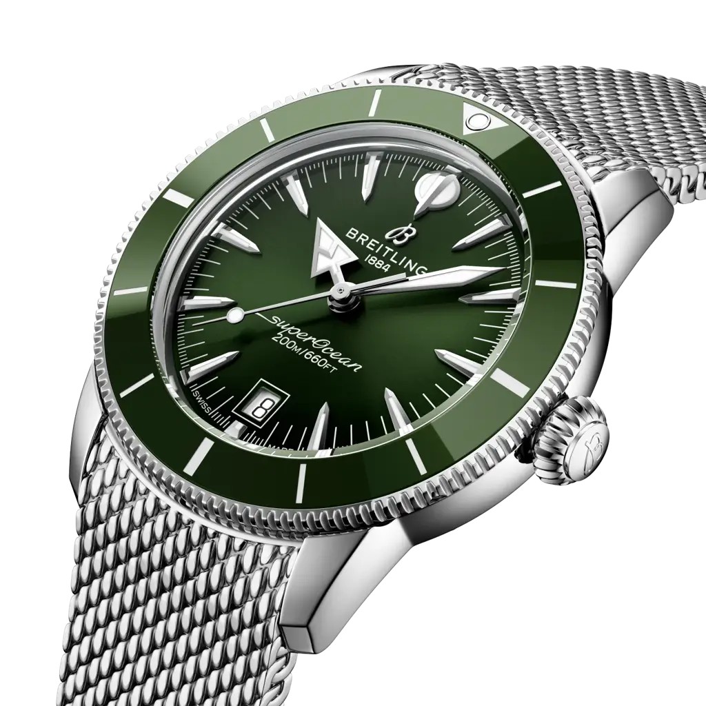 Gemacht, um sich zwischen den Wellen und dem Ufer zu bewegen. Die Superocean Heritage ist keine gewöhnliche Seeuhr – das war sie nie. Als Breitling sie 1957 erstmals auf den Markt brachte, verfolgte das Unternehmen einen anderen Ansatz als andere Taucheruhren dieser Zeit. Bei der Ref. 1004 (einem schlanken Schmuckstück, das nur die Zeit anzeigt) und der Ref. 807 (dem weltweit ersten speziellen Tauchchronographen) ging es nicht nur darum, die Unterwasserwelt zu erkunden, sondern auch darum, dabei gut Die Speer-und-Pfeil-Zeiger, die eloxierte drehbare Lünette und die natürlich schlanken Proportionen machten sie schnell zu einem Favoriten von stilvollen Abenteurern, die für das Meer und die Szene lebten. Auch heute noch ist diese Philosophie das Herzstück der Superocean Heritage. Die Seele der 50er Jahre, aber im neuen Kleid für die Gegenwart. Die neueste Superocean Heritage baut auf allem auf, was das Original unverwechselbar gemacht hat, und verfeinert es. Die Kollektion führt das Automatik-Uhrwerk B31 ein, Breitlings erstes exklusives Manufaktur-Kaliber mit drei Zeigern. Eine Lünette mit Keramikeinlage bietet außergewöhnliche Kratzfestigkeit, während die integrierten Armbänder aus Mesh-Metall oder Mesh-Kautschuk eng am Gehäuse anliegen und mit Faltschließen für ein sauberes, wasserdichtes Finish gesichert werden. Ein diskretes Datumsfenster auf sechs Uhr und die originalen Signaturzeiger – Pfeil für die Stunden, Speer für die Minuten – sorgen für Ablesbarkeit und Ausgewogenheit, über oder unter der Oberfläche.