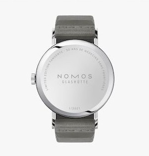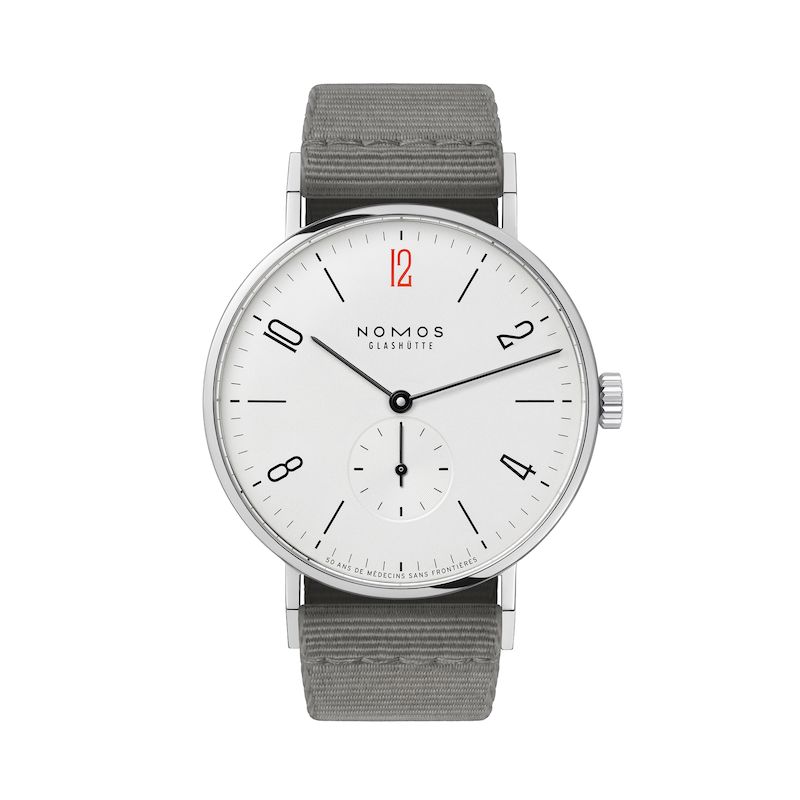 Die rote Zwölf ist ein Hinweis auf die Nothilfeorganisation, die seit 50 Jahren weltweit gegen die Folgen von Epidemien, Naturkatastrophen, Flucht und Vertreibung kämpft: Rot ist die Farbe von Ärzte ohne Grenzen und die der Hilfe. Mit diesem auf 2021 Stück limitierten Sondermodell hilft NOMOS Glashütte der Organisation beim Helfen.