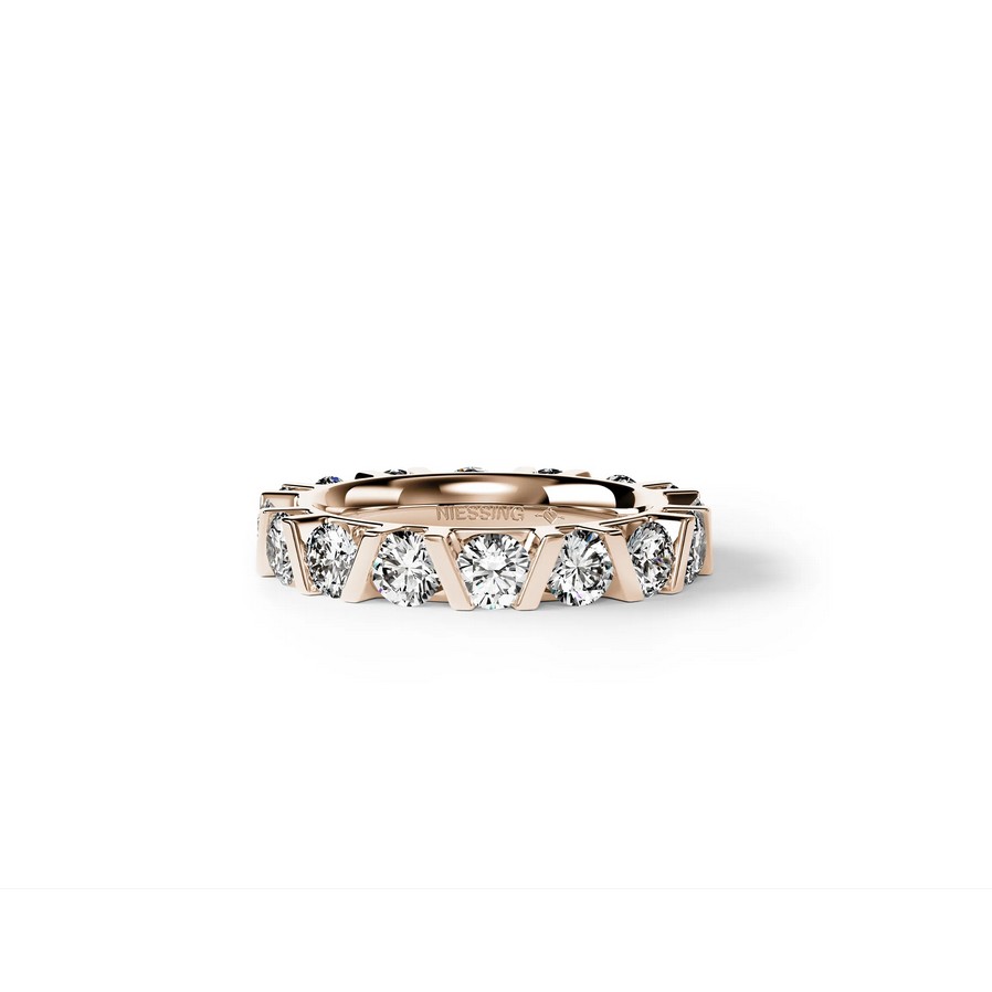 Sie sind wahre Meisterwerke des Designs, die durch ihre dynamische Anordnung der Diamanten bestechen. Die Diamanten in verschiedenen Größen und Fassungen sind rundherum kunstvoll in einer raffinierten Zick-Zack-Form angeordnet und verleihen ihnen so eine außergewöhnliche Strahlkraft. Diese innovative Fassung fängt nicht nur die Brillanz der Steine ein, sondern vermittelt auch ein Gefühl von Bewegung und Lebendigkeit. Das Spiel von Licht und Schatten, das durch die präzise Ausrichtung der Diamanten entsteht, verleiht den Ringen eine faszinierende Tiefe und Dynamik. Die klaren Linien und die minimalistische Ästhetik der Ringe betonen die pure Schönheit der Diamanten und verwandeln jedes Stück in ein einzigartiges Kunstwerk. Diese Ringe definieren Diamantschmuck neu und setzen ein starkes Design-Statement, das neue Maßstäbe in der Schmuckwelt setzt.
